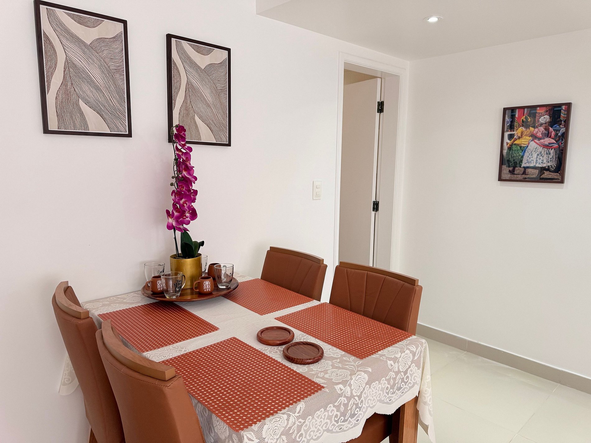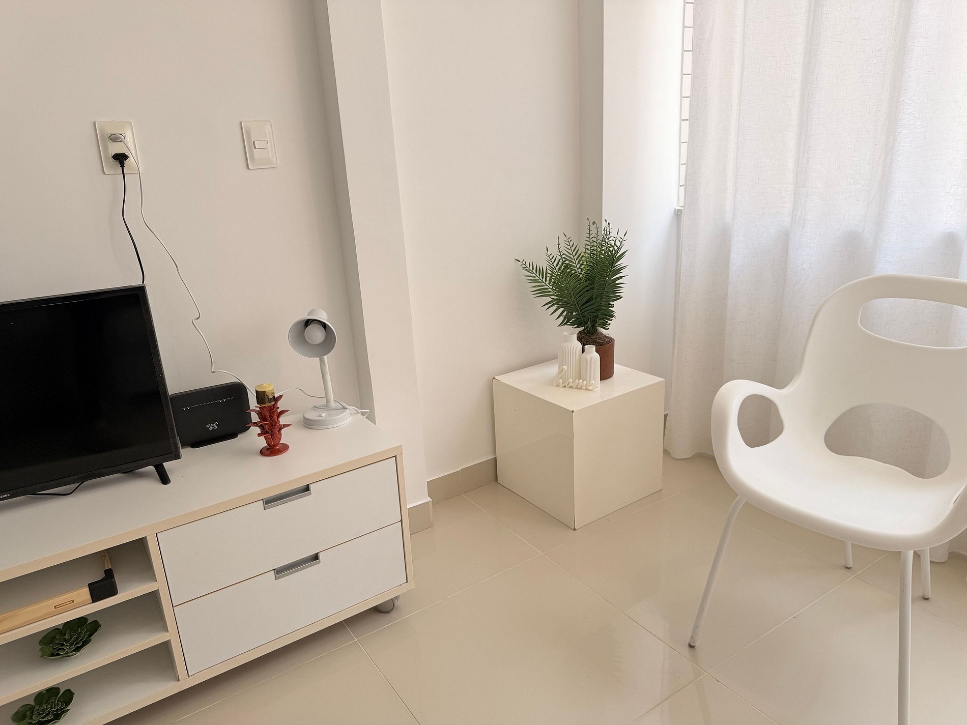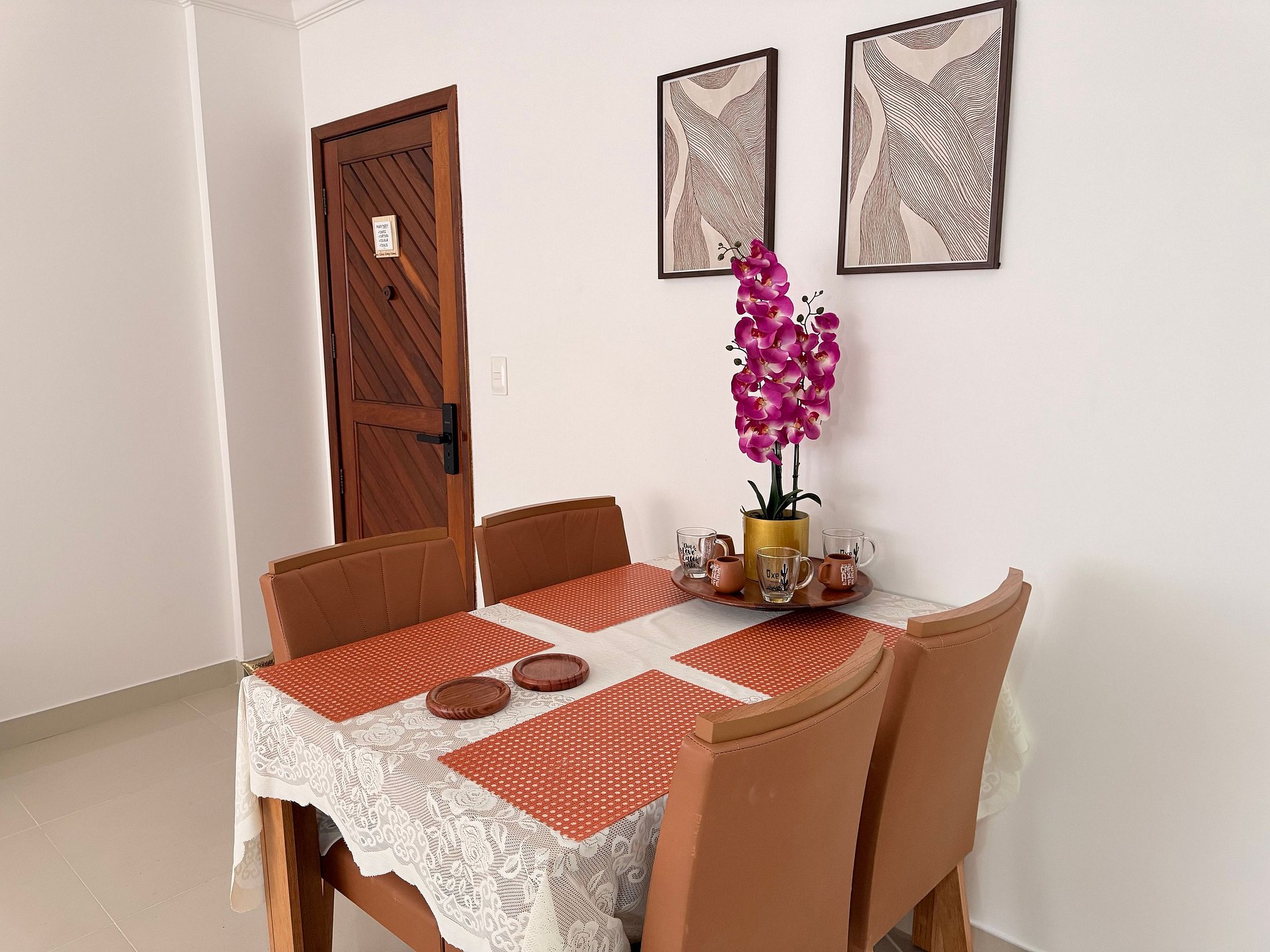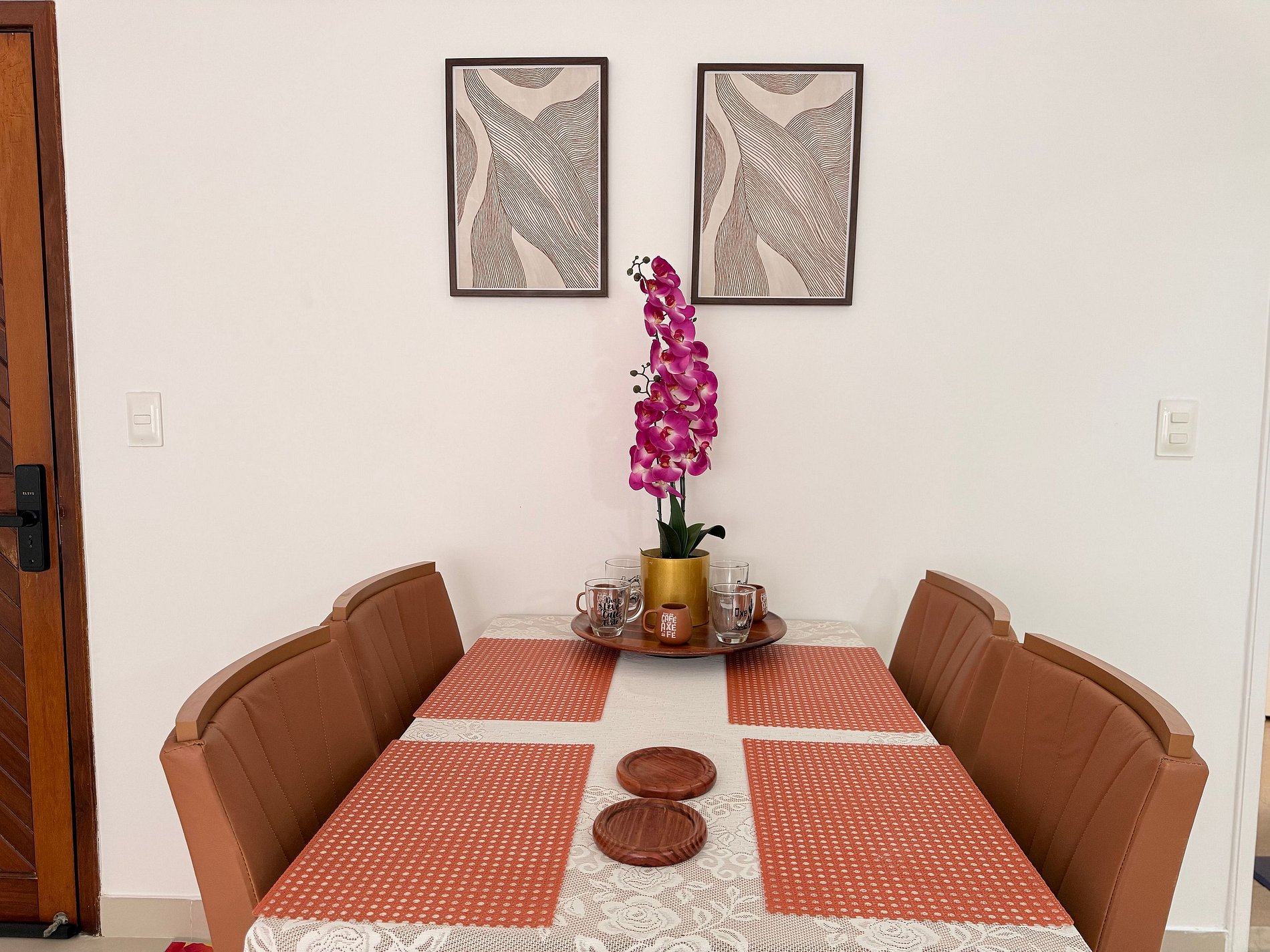 Cozinha completa com todos os utensílios, quartos com roupa de cama e banho, ar condicionado e internet de alta velocidade de smart tv na sala.