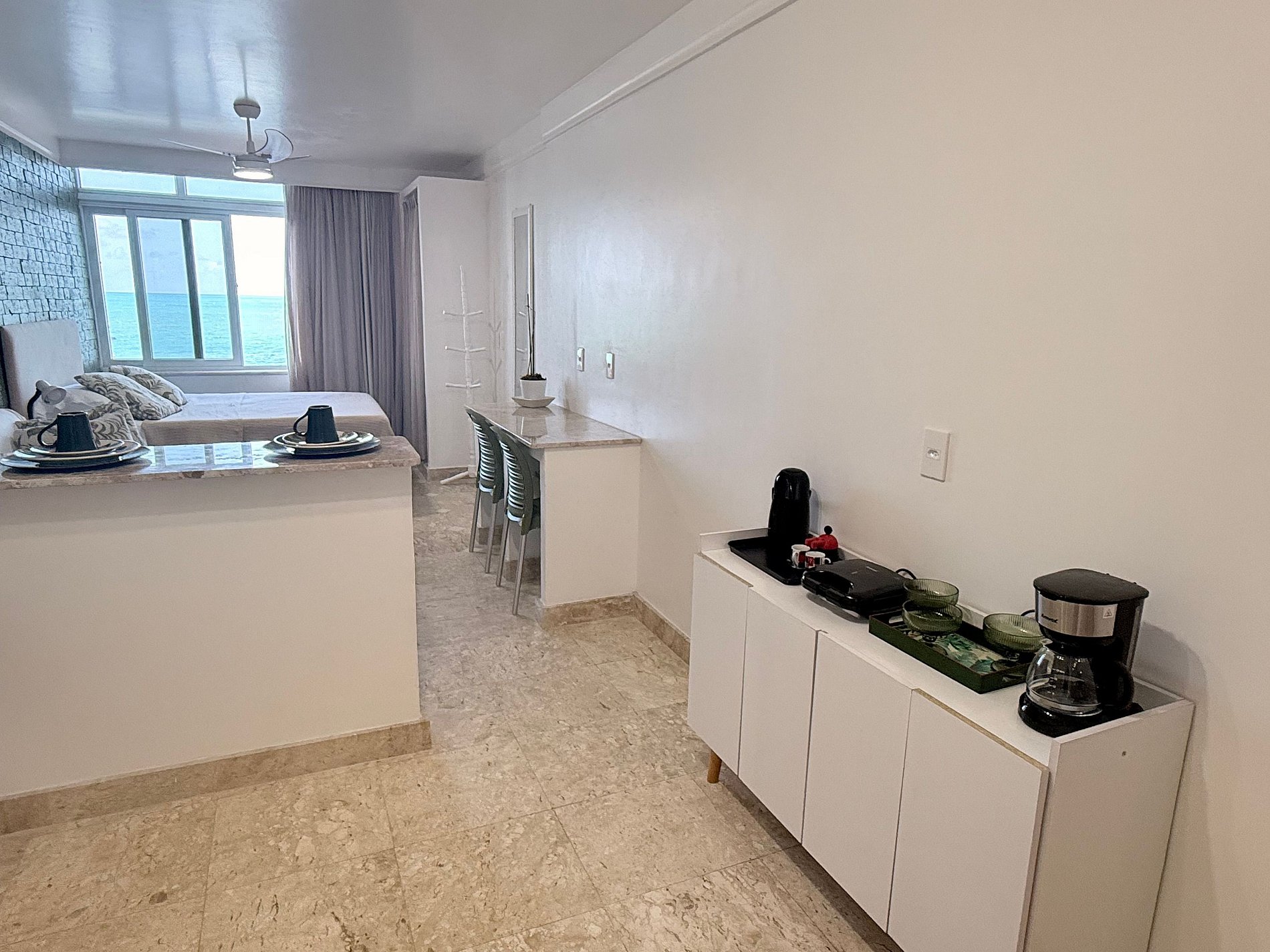Viva o charme de Salvador neste studio moderno na Av. Oceânica. O design clean e sofisticado se harmoniza com a vista espetacular para o mar. Acorde com o som das ondas e desfrute de um visual inigualável!