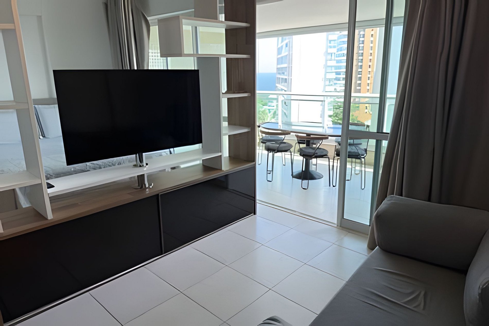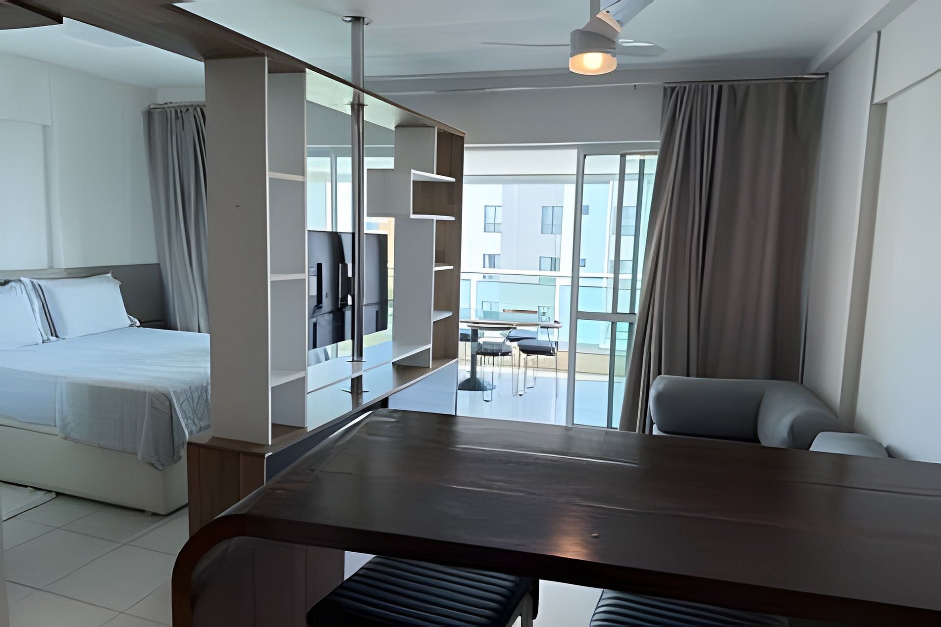 Viva a essência de Salvador neste apartamento impecável a 2 min da Praia da Barra. Relaxe em uma varanda privativa com vista mar e desfrute de uma estrutura completa com cozinha equipada, TV, Wi-Fi e ar-condicionado. O prédio oferece lazer total com piscina, portaria 24h e o diferencial de uma vaga de garagem. Localização privilegiada para fazer tudo a pé, do mergulho no Farol ao jantar nos melhores restaurantes. Conforto, segurança e a brisa do oceano à sua espera. Reserve agora!
