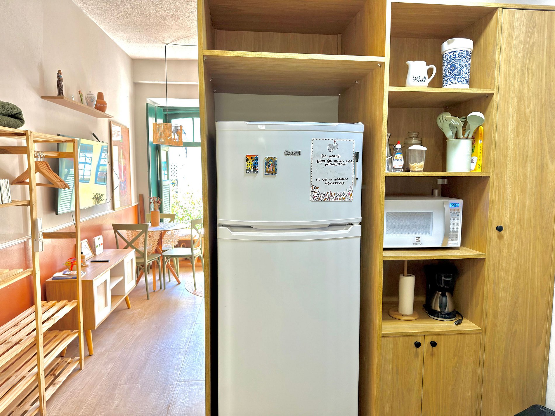 - Cozinha completa com cafeteira, fogão, geladeira, utensílios de cozinha e temperos básicos (sal, açúcar, azeite)