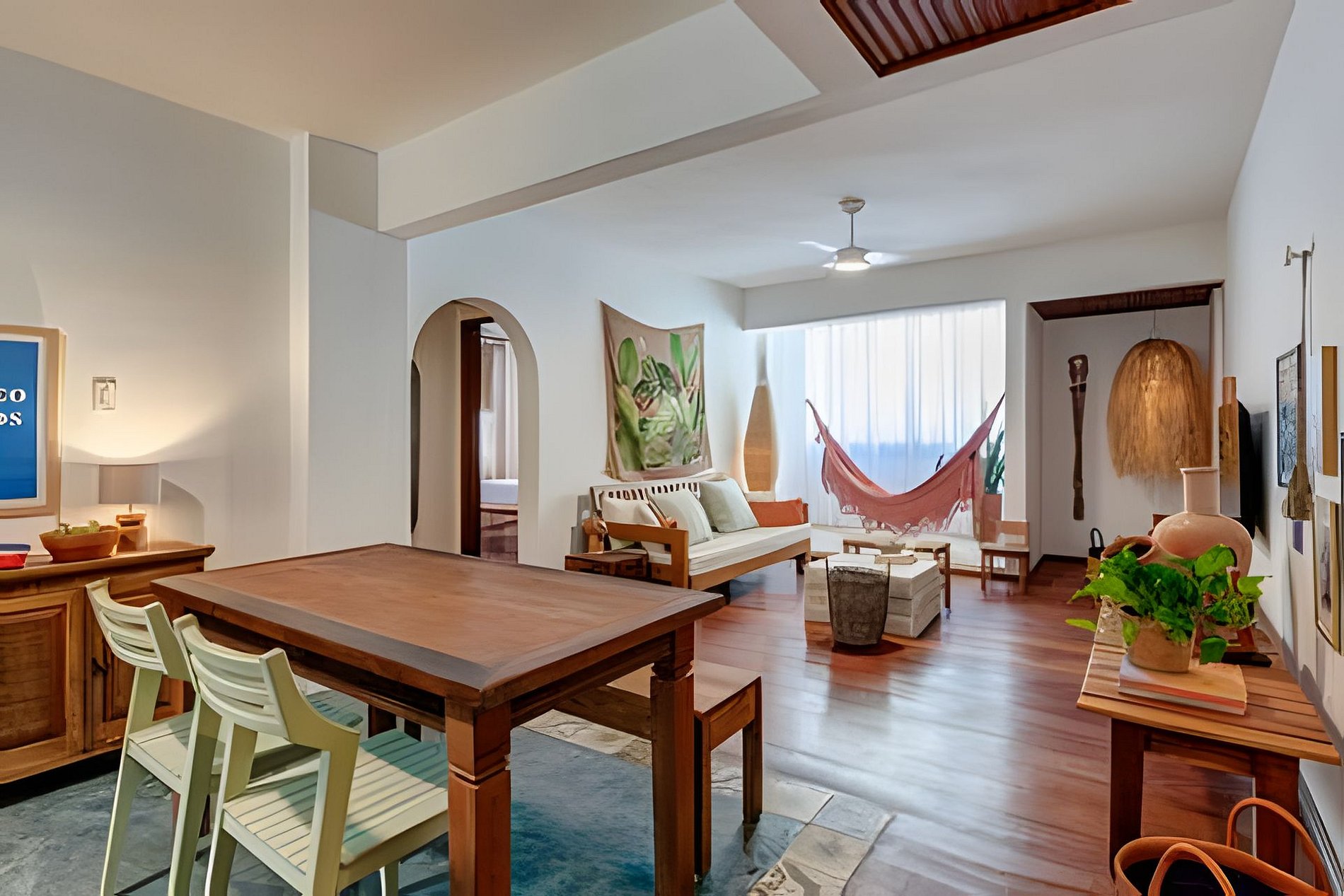 Você se sentirá em casa nesse apartamento cheio de afeto. Decorado com madeira de demolição, palha e arte local, possui ótima ventilação e quartos com ar-condicionado.